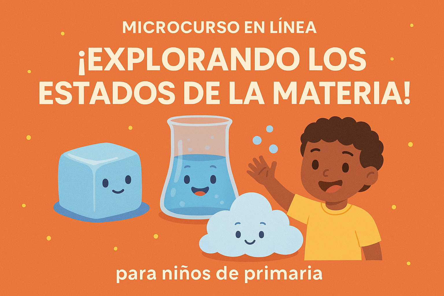 Este micro curso invita a los niños de primaria a descubrir de forma divertida y significativa los estados de la materia: sólido, líquido y gaseoso. A través de actividades interactivas, experimentos sencillos, juegos y reflexiones, los estudiantes no solo aprenderán qué son los estados de la materia, sino que comprenderán cómo y por qué ocurren los cambios entre ellos.